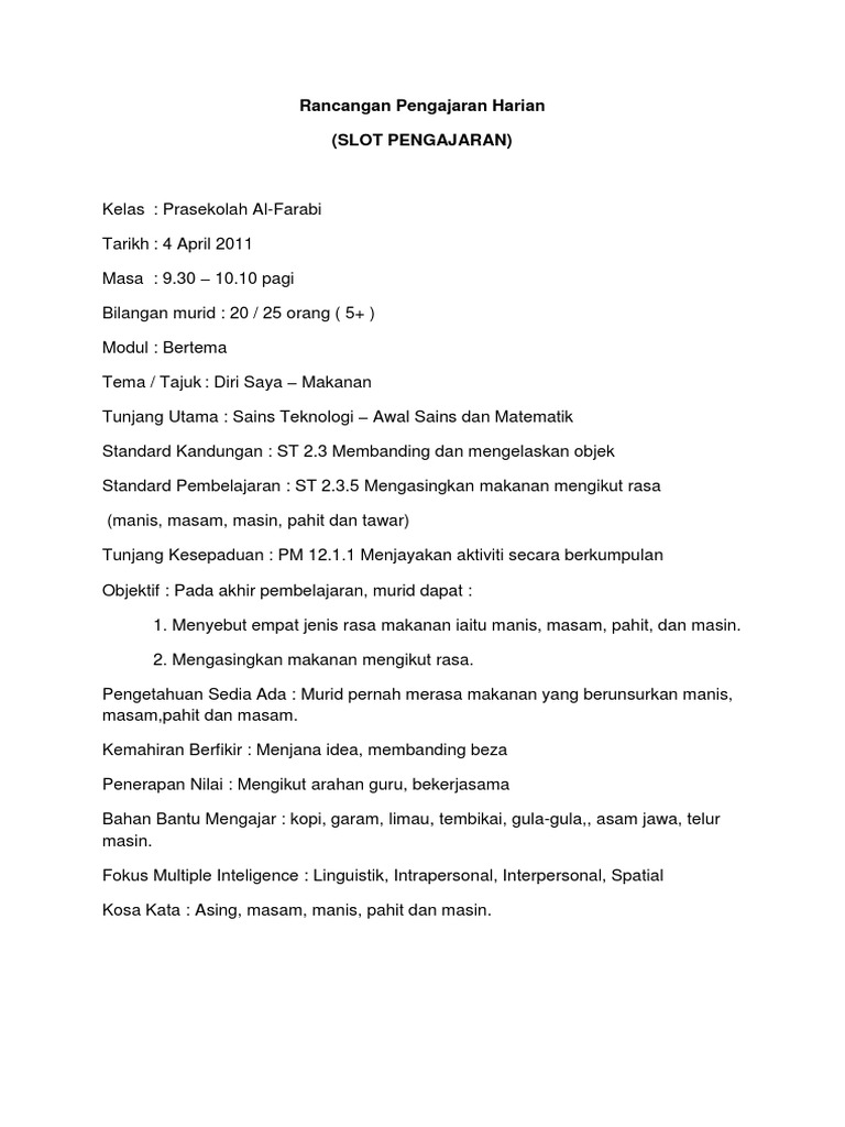 Report rancangan pengajaran harian prasekolah. / 25 kalendar dan kehadiran murid. Rph ini mengenai deria rasa iaitu masam, manis, pahit dan sebagainyafull description. Cukup serat lemak gula juga protein. Aktiviti membaca menulis dan mewarna bahan prasekolah facebook.