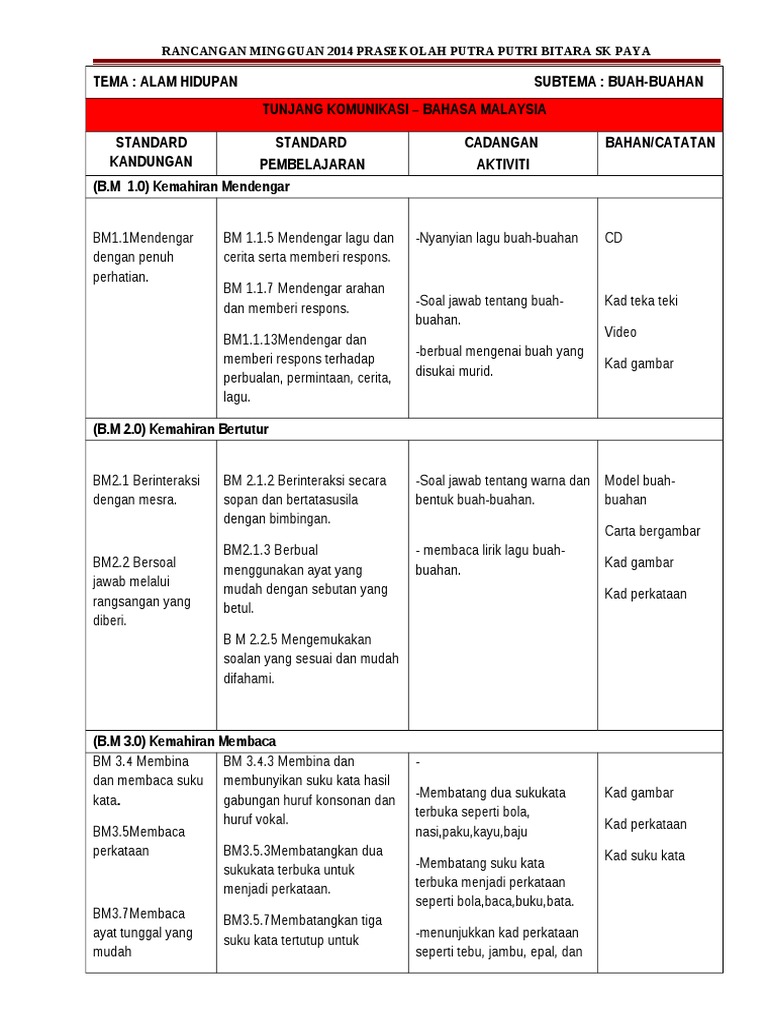 Related : Rancangan Pengajaran Harian Prasekolah Tema Buah-Buahan / Mendengar, bertutur, membaca, menulis guru :.